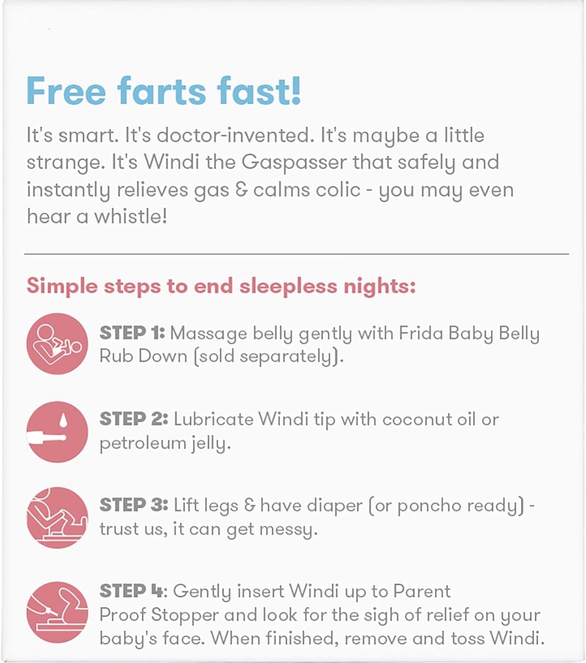 تخفيف جميع الغازات الطبيعية والمغص: لا حاجة إلى قطرات أو ابتلاع، مما يجعل ويندي بديلاً رائعًا.
